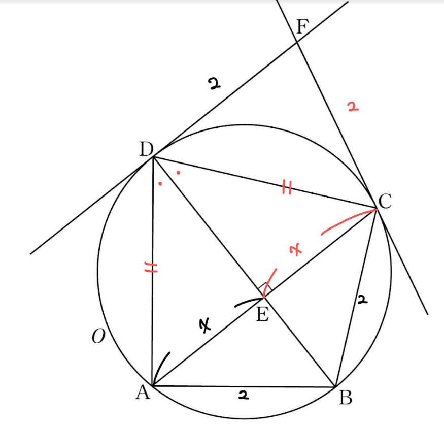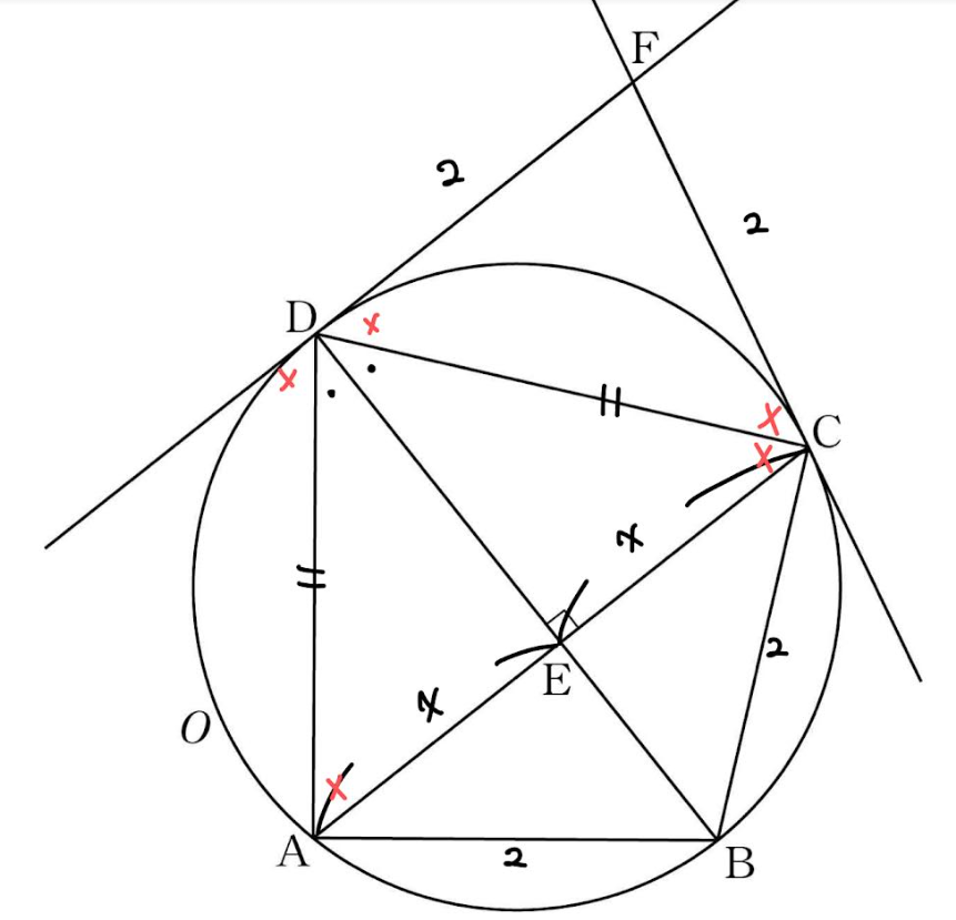 그리고 원 밖의 한점에서 원에 그은 두 접선의 길이는 같기 때문에 FC = 2입니다