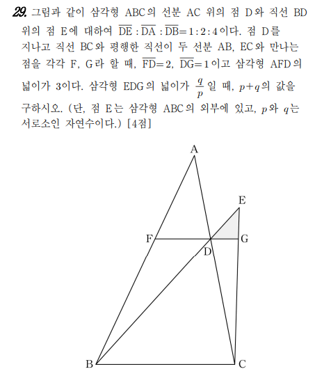 그리고 선분 DE 와 BC가 평행하다고 했으니(문제에 나와있습니다)